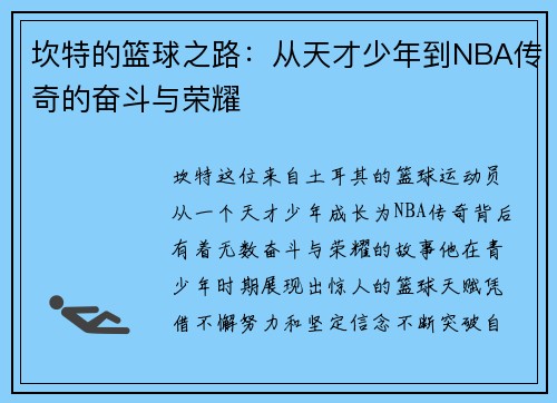 孙悦,这位曾在篮球场上闪耀的传奇人物,以其顽强的毅力和不屈的精神,成为了生活中的平凡英雄。他的奋斗经历不仅仅是职业生涯的缩影,更是一个普通人在追求梦想过程中的真实写照。本文将从四个方面来探讨孙悦的故事:他在篮球场上的辉煌成就、面对挫折时的不屈精神、他对家庭和社会责任感的担当,以及他退役后的新生活与自我价值重塑。通过这些内容,我们可以更深刻地理解这位运动员背后的艰辛与坚持,也能感受到他所传递出的积极...